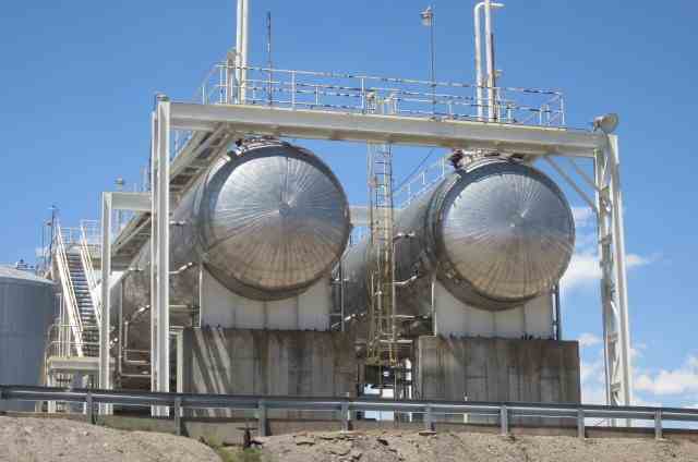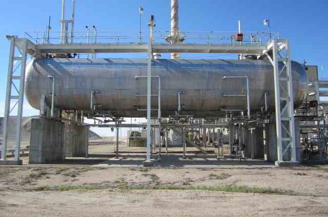 Used 65,000 gallon horizontal carbon steel pressure vessel (bullet tank), built by Eaton Metal Products. Rated 300 psi @ 120F. Shell – 1.47” thick; Heads – 1.46” thick. Serial # 8907, National Board # 789, Built 1990. Previous Use: Ammonia storage. Shipping dimensions - 13' wide x 17' high X 75’ OAL, Weight 196,000 lbs.