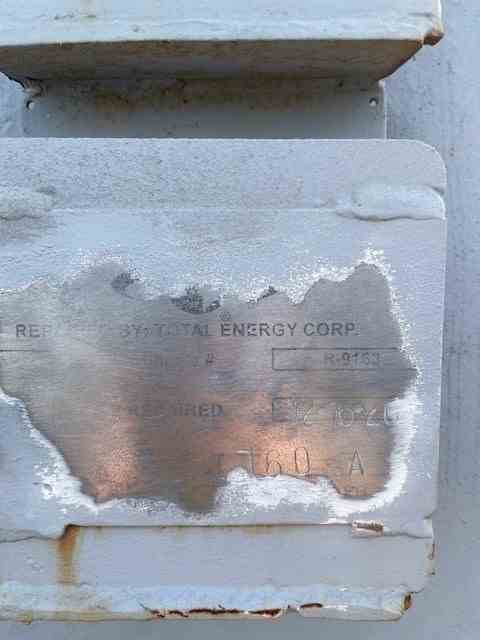 Used 112293 gallon horizonal pressure vessel. Manufactured by Riley-Beaird Inc. Rated 260PSI@100F. 146"OD x 136'OAL. (2) Concrete Saddle mounted. Serial #146391-03-3. National Board #51992. Built 1978. Past use CO2 storage. Quantity 4 available. Weight 221,636 lbs for the bullet and 5,000 lbs for the saddles.