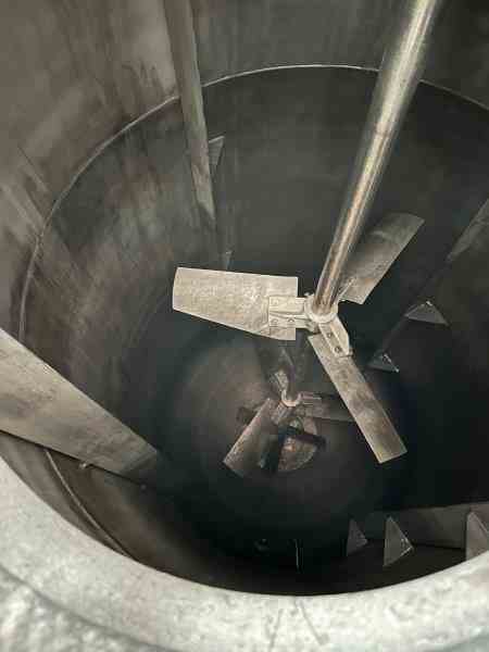 Used 3200 gallon 316 stainless steel reactor. Manufactured by Ward Tank. Shell rated 150psi @450F, 304 SS jacket rated 150 psi @450F. 84" dia X 143" tall. Top mounted Chemineer agitator, Model #4-GTNC-15, 15 HP (2) Sets of Impellers Type SC-3 High Efficiency each at 47.5" dia. Spans plus Bottom Kicker Impeller with 24" Dia. (4) Internal Sidewall Baffles, Dished bottom and top. Serial #WC-4452. National Board #2624. Built 2000.