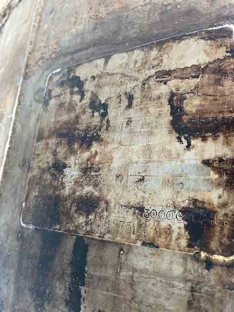 Used 3600 gallon T316 Stainless Steel insulated vertical pressure vessel. Manufactured by Perry Products Co. MAWP 20PSI/FV@250F. Side entering manway. (4) leg mounted. Serial #B-0683-2. National Board #1084. Built 1975.