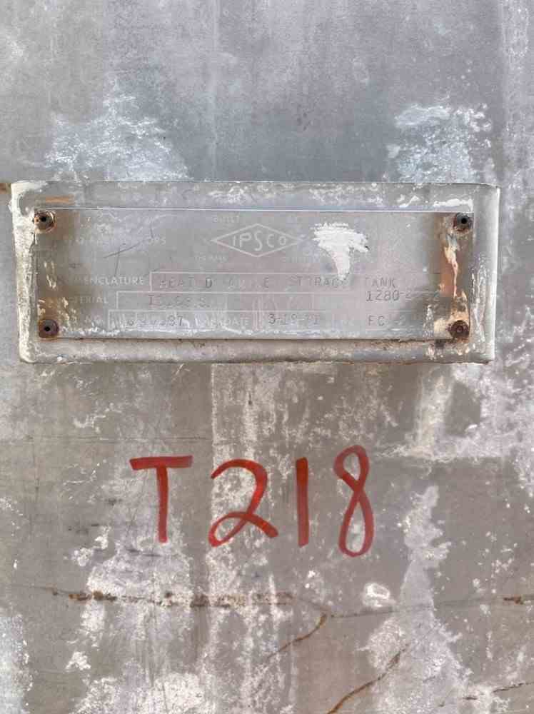 Used 5000 gallon T316 stainless steel vertical tank. Manufactured by IPSCO. Slight cone top, flat bottom. Side manway. Dimensions 8'D x 13'6"T/T. 5000 #. Built 1971.
