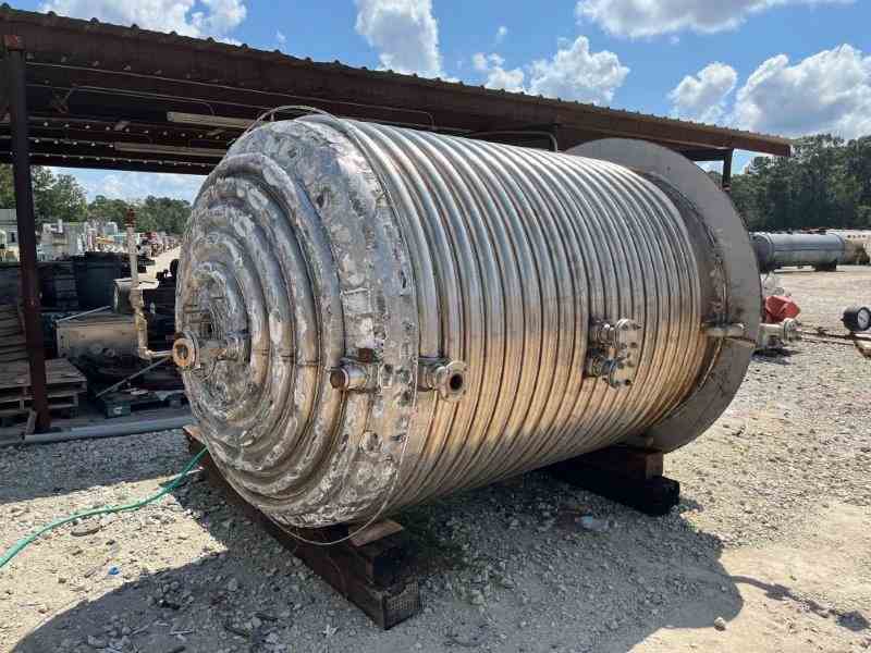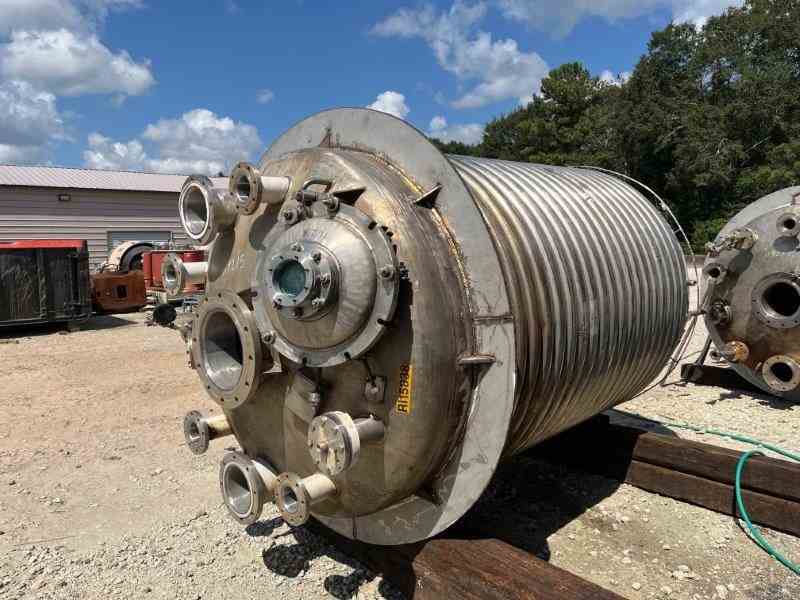 Used 1500 gallon 316L Stainless Steel reactor. Manufactured by Alloy Fab. Internal rated 90PSI/FV @390F. Jacket rated 230PSI @450F. 13.5 kW Ekato Agitator, type EM 100D, designed for 1300 kg/m3. Serial #86/12611. Dished heads. Lug mounted. National Board #1759. Serial #2888. Built 1986. Previously used in API facility.