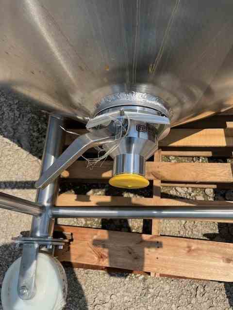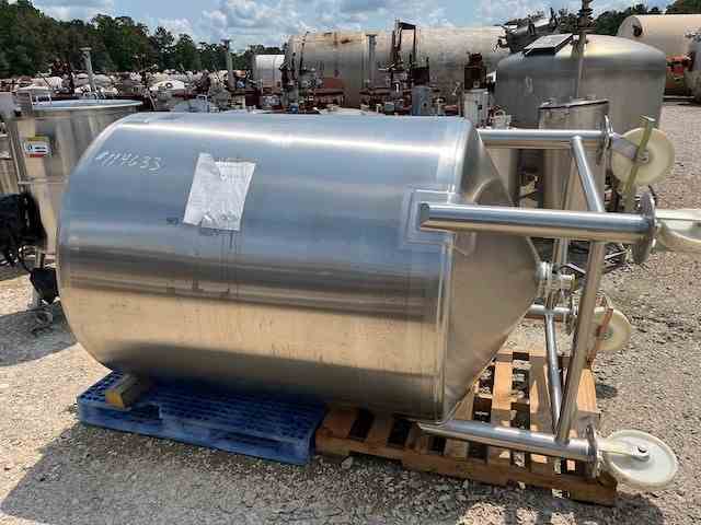 Used 500 gallon Sanitary Stainless Steel Pressure Vessel, Mfg. by Lee. 4'0" diameter x 5'0" length. Vertical. Model 500CBT. Mawp 5 psi @ 250 F.Serial #883-1(?) Built 2000.