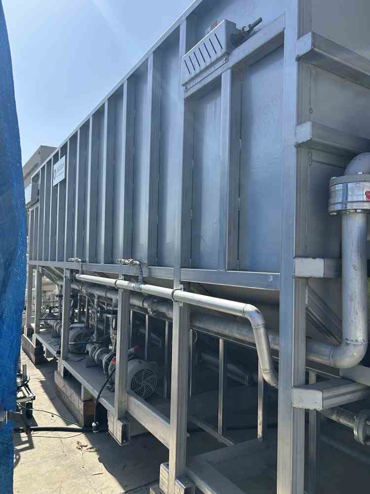 Unused 760 gpm 304 Stainless Steel Dissolved Air Flotation System. Manufactured by Evoqua Water Technologies. Model RT-180A-U-L. 25'1" x 10'5" x 9'8". 6500 main tank. Active Surface area 182 sq ft. Effluent water: approx 360 gpm nominal/760 gpm max. Float hopper 360 gal. empty weight 11000 lb. Includes 748 gallon DAF Effluent Tank, 855 gallon Flash Mix/Flocculation Tank. Controls. System Serial #2034001501-202207-01. Built 2022.