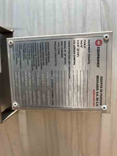 Unused 8,901 gallon 304L Stainless steel vertical Tank. Manufactured by Equipromex (Mexico). Internal rated ATM @306F. 316 SS Coil rated 87PSI/FV @380F. 10'0"ID x 12'0"T/T. Chemineer Agitator Model #12MRA-3, 3 hp, 1800 rpm input, 45 rpm output, 230/460 volts. 24" manway with davit. Dished head and bottom. Leg mounted. 12,786 lbs weight. Built 2022. Designed as Silica Reactor.