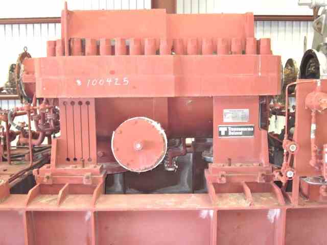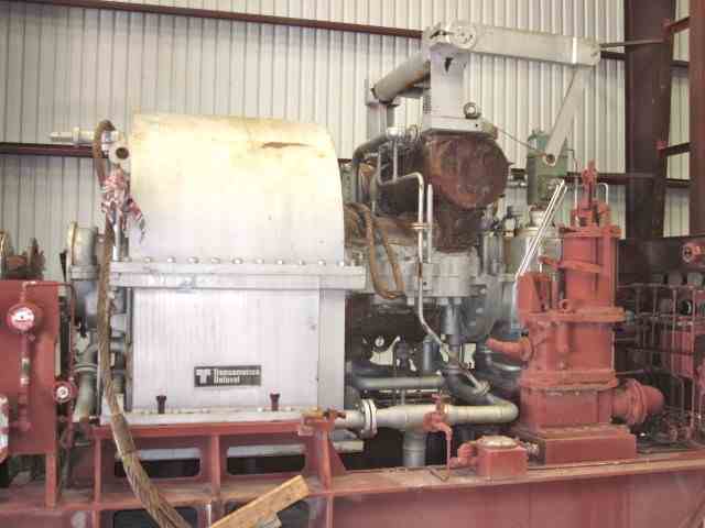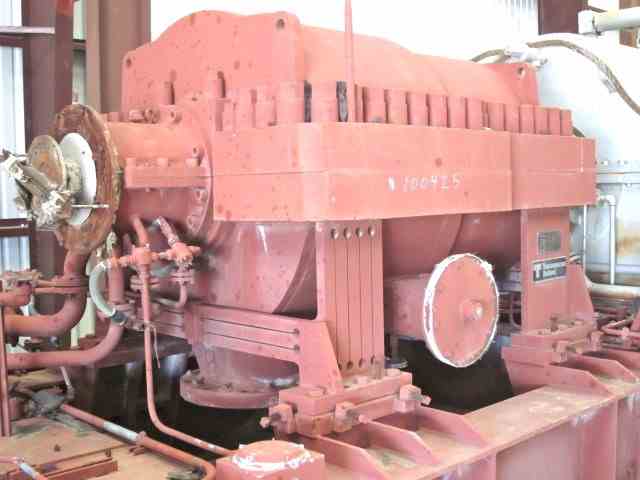 Unused 47762 ACFM ammonia compressor train. Manufactured by Delaval. Model 9CK371. 16929 HP, 7980 RPM. Steam turbine type driver. Consisting of Delaval 47762 ACFM first body compressor. Model #5CDK44, 7900 RPM, 6470 HP. Serial #605589. 8803 ACFM Delaval centrifugal air compressor as second body compressor. Model# 9CK37,8105 HP motor, 7910 RPM, serial #605593. 12,260 kW (16,928 BHP) Delaval steam turbine, inlet steam pressure rated 565 psi @700F. 16929 HP; 7980 RPM. All train built in 1982. Designed for 1500 TPD Kellogg ammonia plant.