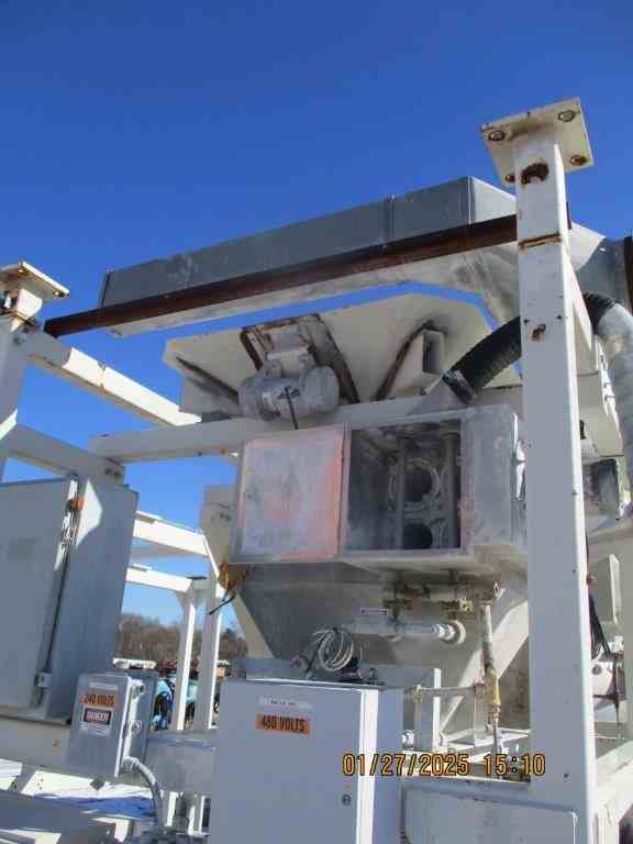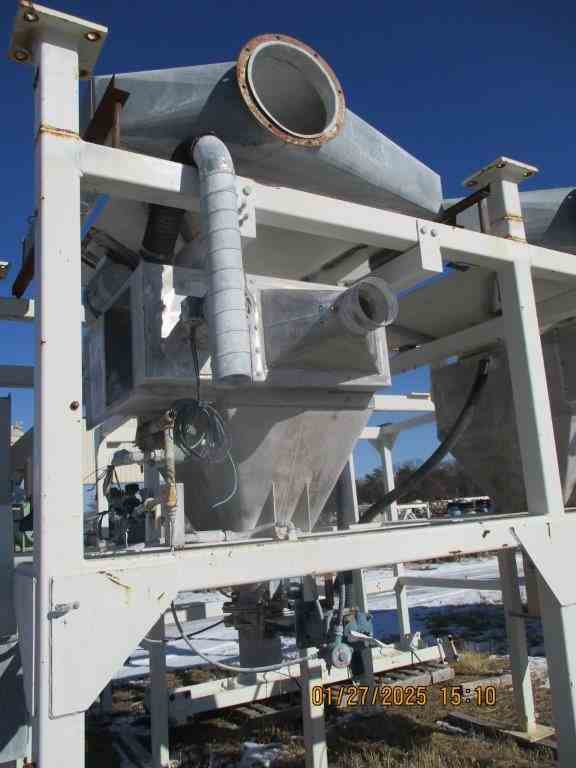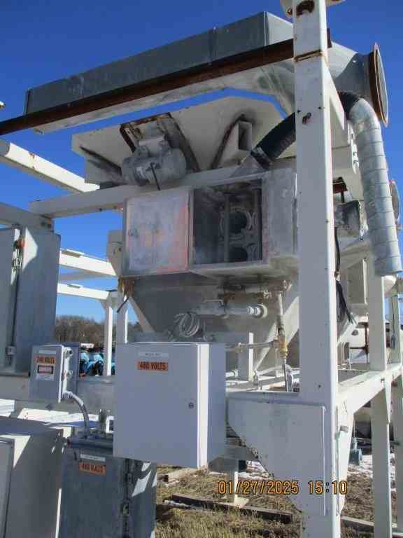 Used dual Super Sack unloading station including position for (2) super sacks. Has hoist for each station, hopper unload, and operator control panel. Includes (1) volumetric feeders for discharging of each sack.