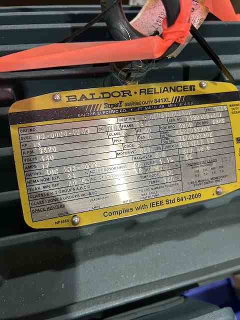 Unused 15 hp Centrifugal Pump. CARB Diesel Blending Pump. Mfg. by Sulzer. Size 1.5x3x8-1. 100 gpm @ 222' head. 705 psi @ 160 deg. F. Casing CS. Impeller 12 Cr. With 15 hp motor. Serial #656618.