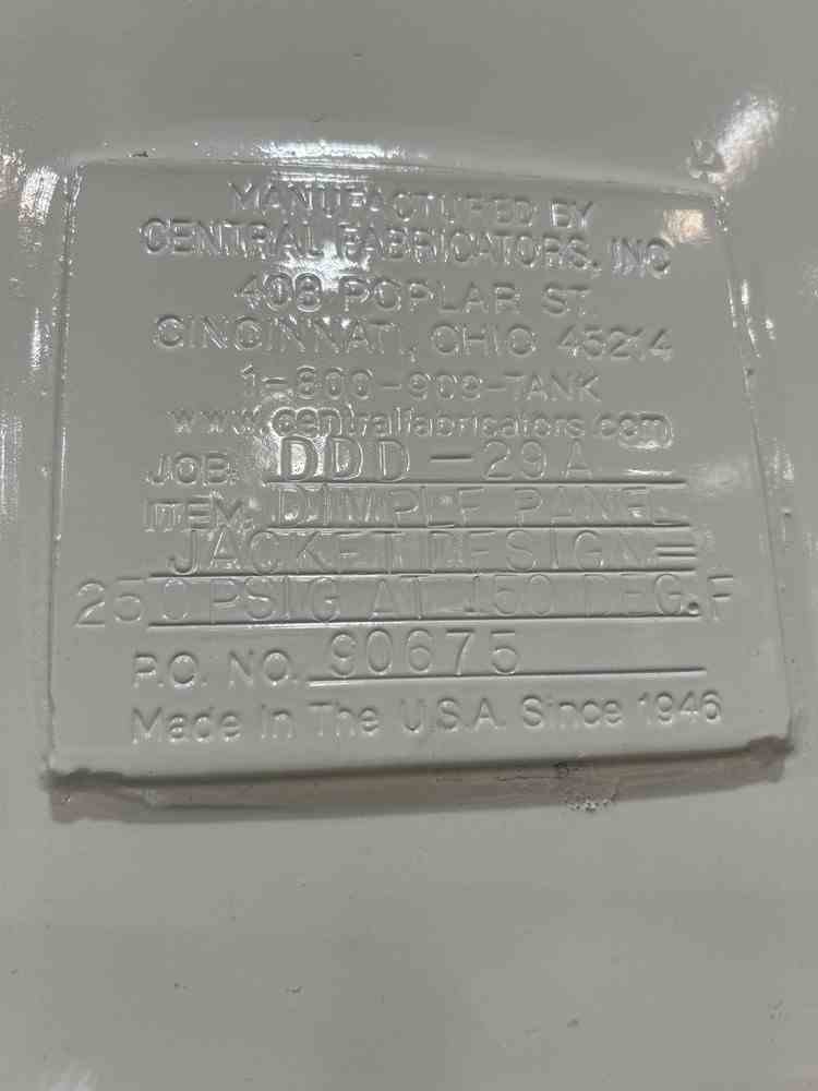 Unused 339 cu ft 304 Stainless Steel Jacketed Ribbon blender. Manufactured by Hayes and Stolz. Model HR72x144SSCI. Designed for 3500lb/hr. Max density 28.1 lb/ft3. 60HP motor. Dimple jacket designed 250PSI@150F. Leg mounted. Spent Clay Ribbon Blender. (2 available)