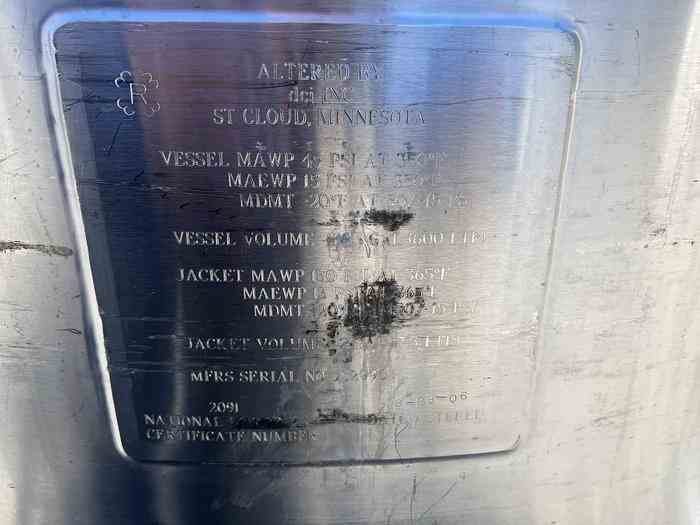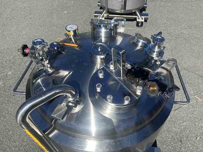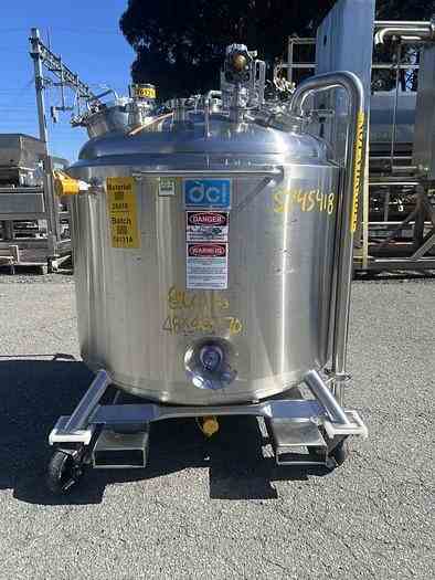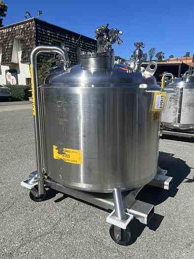 Used 158 Gallon Hastelloy Reactor Vessel. Manufactured by DCI. 600 liter. MAWP 45 PSI /FV @ 350F. Jacket rated 150 PSI @ 365F. Hastelloy C-22 construction. Multiple top inlets, clamps and probes, dished bottom. Forklift ready, mobile on casters. National Board #G131. Serial #JS2996. Built 2005. Previously used in biotech operation.