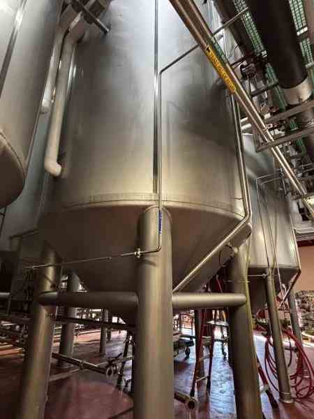 Used 16600 Gallon 304 Stainless Steel tank, jacketed, cone bottom. Manufactured by Mueller. Dished head. 10' 1 7/8" OD x 36' 11 3/8" Tall. Shell rated 15 psi @100F. Jacket rated 100 psi @100F. Weight 13200 lbs. Built 1995. Serial #164563-1. Previous use: 400 BBL brewery fermentation vessel. (qty 36 available)