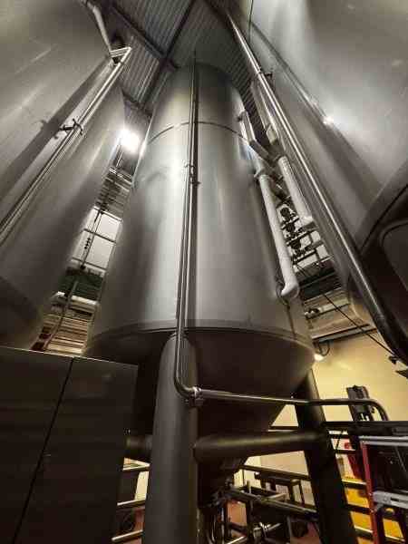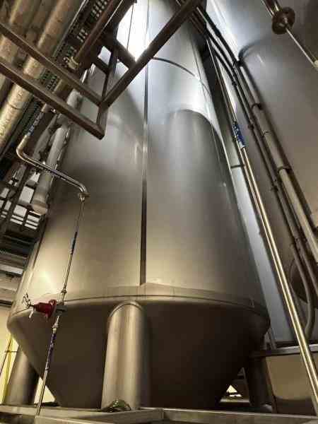 Used 16600 Gallon 304 Stainless Steel tank, jacketed, cone bottom. Manufactured by Mueller. Dished head. 10' 1 7/8" OD x 36' 11 3/8" Tall. Shell rated 15 psi @100F. Jacket rated 100 psi @100F. Weight 13200 lbs. Serial #167598-1. Previous use: 400 BBL Brewery Brite Tank.