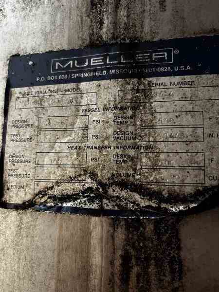 16600 gallon cone bottom mueller stainless steel vessel