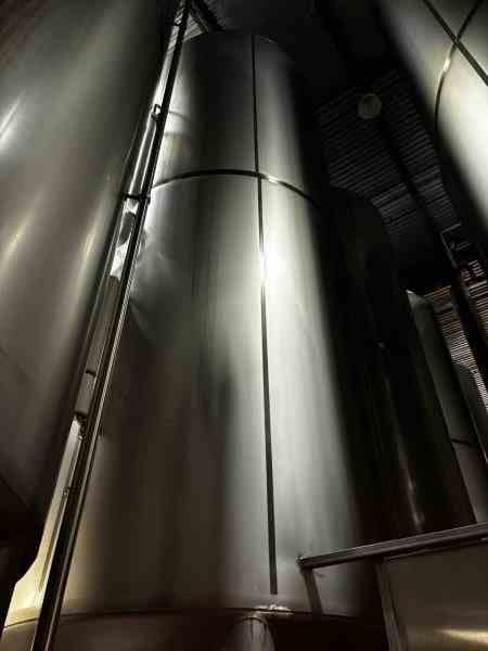 Used 16,600-gallon 304 stainless steel tank, jacketed, cone bottom. Manufactured by Mueller. Dished head. 10' 1 7/8" OD x 36' 11 3/8" tall. Shell rated 15 psi @ 100°F. Jacket rated 100 psi @ 100°F. Weight: 13,200 lbs. Built in 1995. Serial #164563-13. Previous use: 400 BBL brewery fermentation vessel.