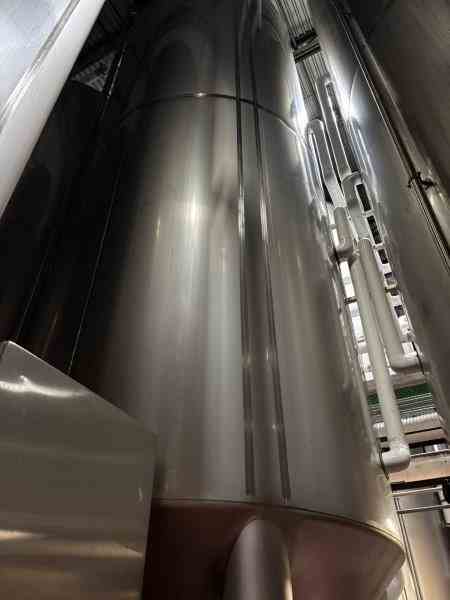 Used 16600 Gallon 304 Stainless Steel tank, jacketed, cone bottom. Manufactured by Mueller. Dished head. 10' 1 7/8" OD x 36' 11 3/8" Tall. Shell rated 15 psi @100F. Jacket rated 100 psi @100F. Weight 13200 lbs. Built 2008. Previous use: 400 BBL brewery fermentation vessel.