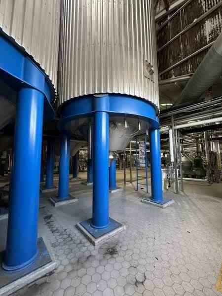 Used 9300 gallon (300 BBL) 304 stainless steel jacketed pressure vessel. Manufactured by Ziemann Bauer GmbH. Vessel Rated 29psi @86F, jacket rated 43psi @86F. 10' 2" dia x 30' tall. Dished head, cone bottom.Previously used in brewery as fermenter, cooled with Glycol @24F. National board #152. Serial #8630-14300129/1000. Built 2012.