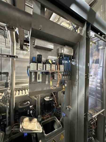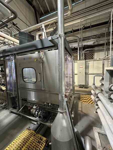 Used Keg Washer, cleaner and filler system. Manufactured by KHS GmbH. Model Innokeg COMBIKEG R5. For product flow speed control, maximum filling speeds are 1.5 l/s (0.396 gal/s, 23.78 GPM), 2.2 l/s (0.581 gal/s, 34.87 GPM), and 2.5 l/s (0.660 gal/s, 39.63 GPM), while orifice control systems operate at 2.0 l/s (0.528 gal/s, 31.70 GPM). Minimum pressures at the filling head range from 1.7 bar(g) (24.66 psi) to 3.6 bar(g) (52.21 psi), while orifice control systems operate at 1.2 bar(g) (17.40 psi). Typical product temperatures are maintained between +1 °C (33.8 °F) and +6 °C (42.8 °F), with CO2 content in the range of 5–6 g/l (0.67–0.80 oz/gal). Product transfer pressures before the DFC valve vary between 3.0 bar(g) (43.51 psi) and 4.9 bar(g) (71.07 psi) for different fittings, with a maximum of 5 bar(g) (72.52 psi) in product flow speed control systems. Spray product usage is 27 ml/keg (0.91 fl oz/keg) for flat fittings and 67 ml/keg (2.27 fl oz/keg) for well-type fittings, with up to 5 ml/keg (0.17 fl oz/keg) recoverable for reuse. Dimensions: 8' x 14'3" x 8' (Wx L x H). Built 2016.