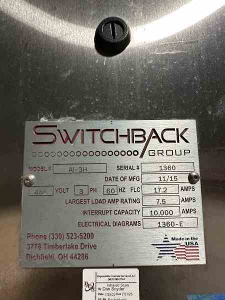 Used can cartooner, built by Switchback. Model AI-3H.480V/3Ph/60hz. 4, 6, 8, 9, 12, 15, 16, 18, 24 Pack formats up to 23 cartons per min. Built 2015, serial #1360. Previously used in brewery.