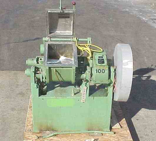 USED WERNER AND PFLEIDERER STAINLESS STEEL SANITARY TWIN ROTOR BATCH KNEADER-SIGMA MIXER, TYPE (MODEL) UK 8 lll E 2, SERIAL # F 2099. FEATURING 10 GALLON TOTAL CAPACITY AND 5 GALLON WORKING CAPACITY (APX), JACKETED BODY WITH STA-BOLT STYLE JACKET, HINGED DOME TYPE COUNTER WEIGHTED COVER WITH SECONDARY HINGED INSPECTION DOOR AND SAFETY GRATE, MANUALLY OPERATED TILTING BODY WITH SPRING ASSIST AND MANUAL POSITION LOCKS, PACKING GLAND SHAFT SEALS, 11.75" X 13.25" X 12" DEEP MIXING CHAMBER, 7.5 HORSEPOWER ENERGY EFFECIENT DRIVE BY RELIANCE, 230/460/ 3 PHASE VOLTAGE, 20/10 AMP, 1160 RPM WITH FOUR SHIV PULLEY DRIVING MIXER FROM FLOOR MOUNTED POSITION. FORMERLY USED IN CHEWING GUM DEVELOPMENT LAB.