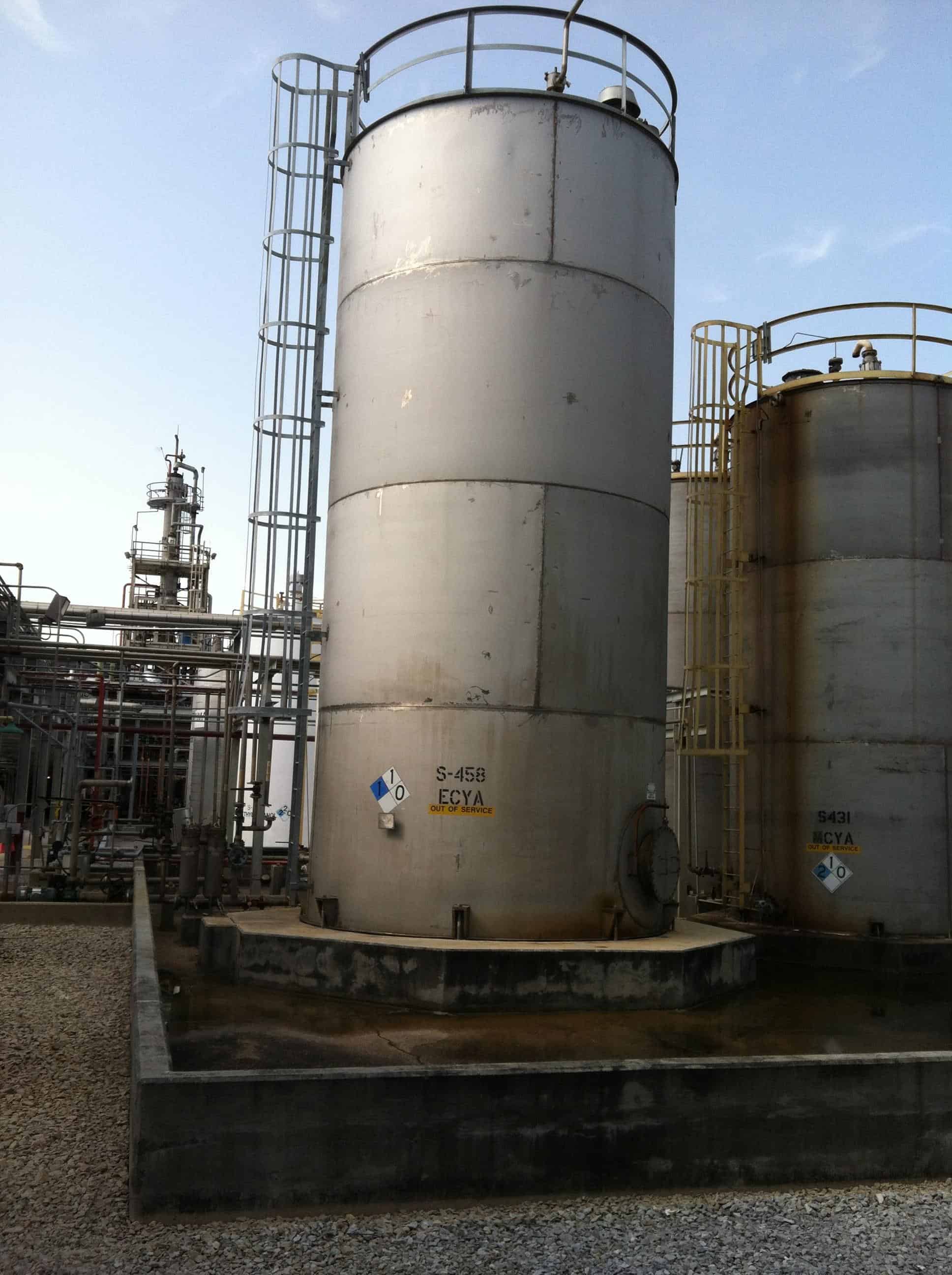 Used 31,000 (31,038) Gallon Vertical American Tank & Vessel API 620 304L Stainless Steel Storage Tank. 13'6" diameter x 30' height. Flat with sump bottom, coned top. 3/16" thick, Specific gravity - 1.08. 2.5 psi design pressure @ 210 C. Serial # 11326. Built 1996. Previous Use: ECYA Storage Tank. Empty weight - 15,624 #.