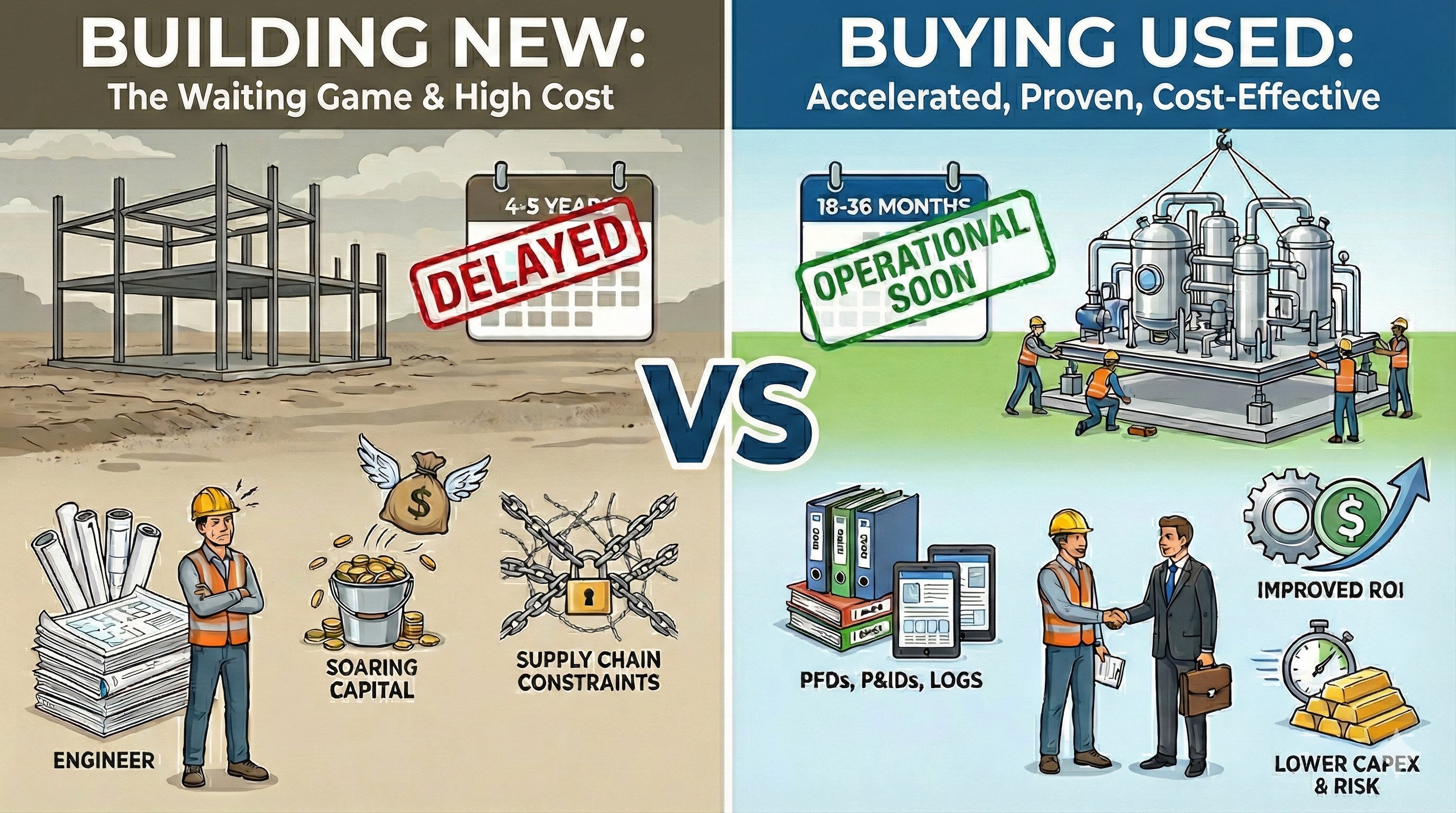 By choosing this route, your project team skips years of detailed engineering design, 18–30 months of fabrication lead times for complex equipment, vendor qualification, and major permitting. Professional dismantlement, marking, and logistics management minimize field work and guarantee fit-up upon reassembly, directly translating into a massive, immediate time-to-market advantage.