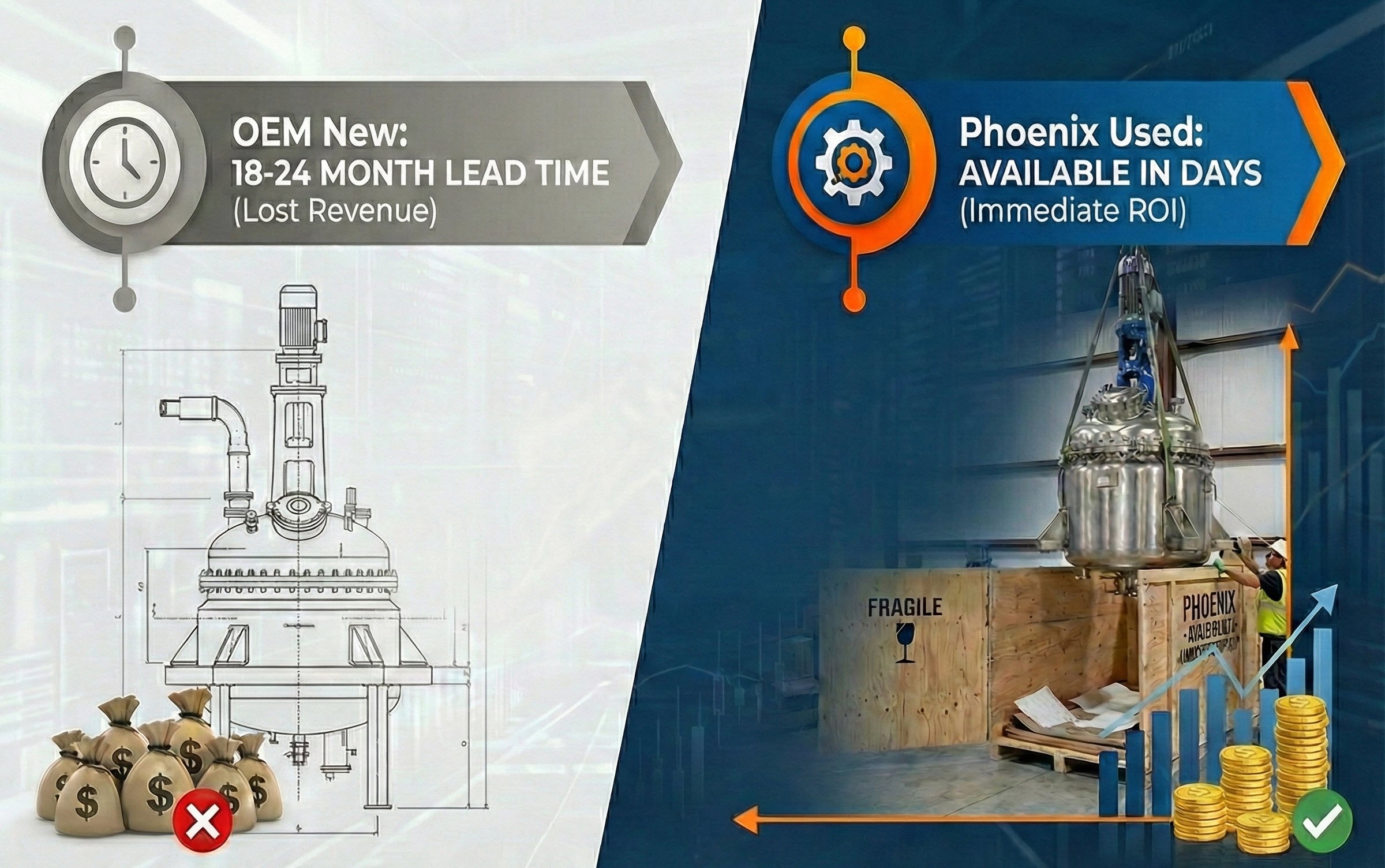 Used industrial equipment dealers such as Phoenix Equipment handle decommissioning and securing equipment, freight arrangements, and more, putting cash in your hand in days, not months or years. When you sell industrial equipment to surplus machinery buyers, you keep your production and operations disruption to a minimum.