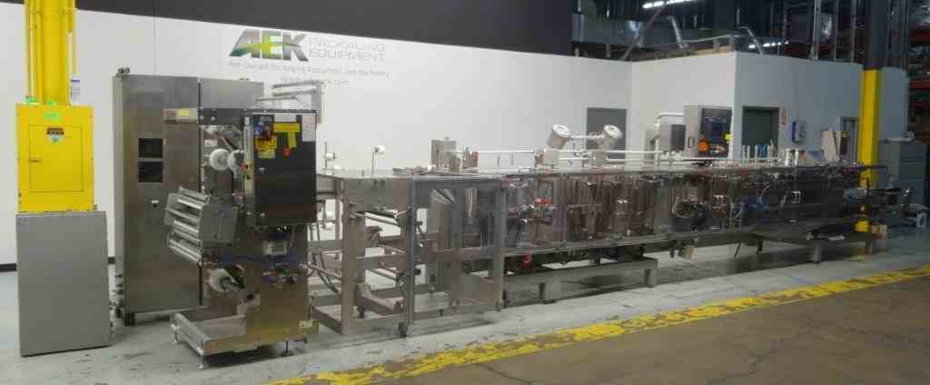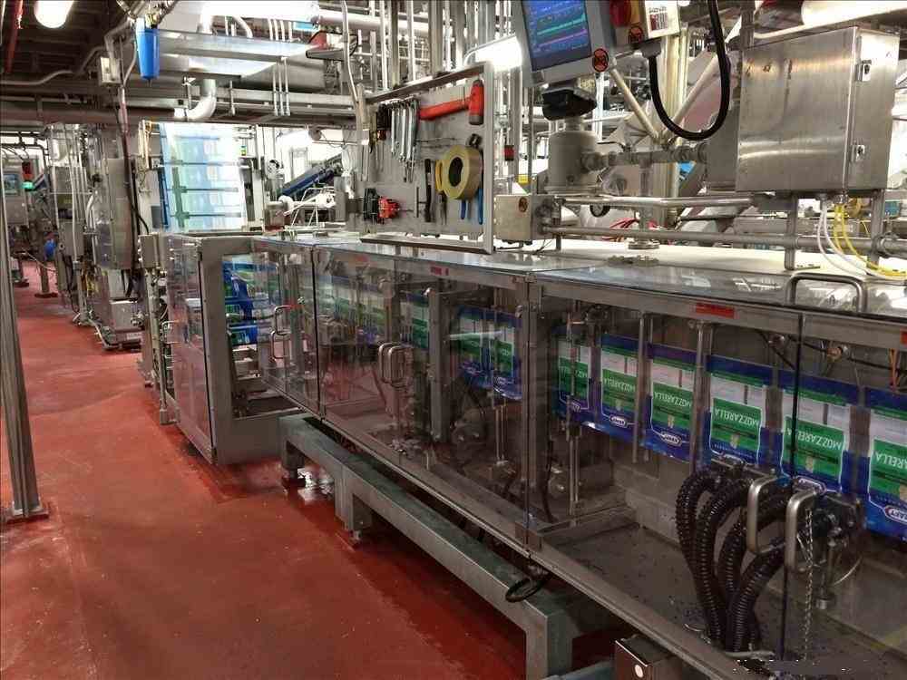 Used-Bossar Model B 3700, sn 190032 Horizontal Pouch Form for Dual Head Filler, Allen-Bradley controls, produces horizontal pouches from 5" x 5" up to 7.25 x 15" (2000 cc volume) at speeds of up to 110 packages per minute. Operating speeds of 60 - 90 bags, minute. Equipped with Zipper applicators. Last packaging shredded cheese. All Stainless Steel Construction. Film rolls with widths up to 25", diameters up to 23", accepts full range of laminated material, foils, polyesters, nylon etc. Air: 80 psi, 12 cfm. Electrical: 3/60/460v. Ishida scale fillers available separately.