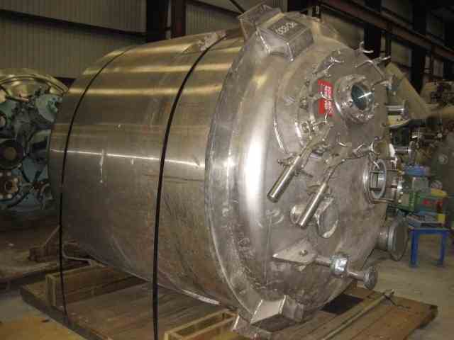 Used 1500 Gallon Northland Stainless Hastelloy C Reactor, shell rated 100 psi @ 400 F, jacket rated 150 psi @ 400 F, 6'6" dia x 5' length, complete with agitator and shaft, (2) parallel paths of 3" x 11 GA. 316L SS Half Pipe 5 Turns on 4.5" pitch on shell od & (2) parallel paths of 3" SCH 10 316L SS half pipe 2 turns on 4.5" pitch, lightnin agitator with u-l coded drive, 3 hp, 208-230 volts, 1760 rpm, 2 hp, 190/380 volts, 1470 rpm, dished heads, built 2001.