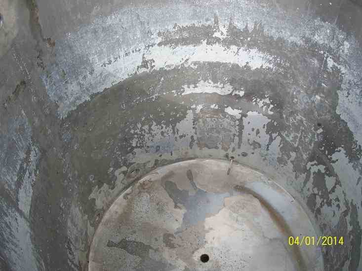 Used approximately 400 gallon vertical 304 stainless steel tank. 45" diameter X 60" high straight side. Open top, flat bottom with 2" outlet. (2) 1 1/2" side NPT outlets, (2) 1" side outlets for level indicator. (2) 1 1/2" side bottom outlets. Mounted on carbon steel legs.