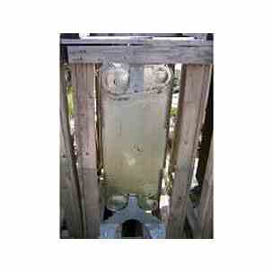 600 sq. ft. UNUSED ALFA Laval copper brazed plate exchanger. T-316 stainless steel construction. Model CB-300-198L. Approximately 600 sq. feet. (198) plates 14†wide x 38 ½†high. Design pressure: max 25 bar, min 16 bar. Design temperature: max 225/225 degrees C, min -160/-160 degrees C. Volume: 58.84/69.30 liters. T-316L stainless flanges. Built 2001. S/N# 5399502.