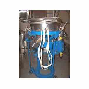 30" screen diameter M & M Machine VORTI-SIV model #VS10030 screener. Equipped with 2HP electric motor connected to a 1 1/2 HP reeves drive with start/stop and reset controls. Screener has stainless steel contact parts. Mounted on carbon steel stand with casters. Has 30" screen diameter. Includes extra screens.