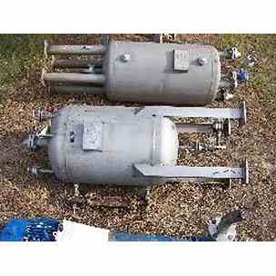 50 gallon Evans and Sons Inc. vertical T316L stainless steel vacuum receiver. 24" diameter x 24" straight side. Welded dished heads. Internal rated 50/FV @ 350 degrees F. NB# 502. Mounted on legs. Fittings top: (1) 2" and (2) 3/4". Center bottom 3/4" drain.