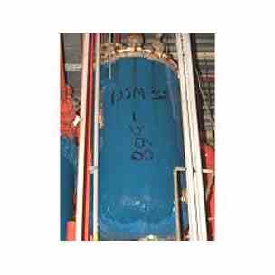 90 gallon Fesco vertical T-316 stainless steel tank. 24" diameter x 48" high straight side flat top. Dished bottom, flat bolted top. Internal rated 5 psi @ 300 degrees F. Equipped with top mounted 1/3 HP lightnin model XJAC-33 agitator. Fittings top: (1) 6" agitator flange (1) 8" Handhole (1) 1 1/2" (2) 1" (1) 1 1/2" center bottom drain. Lug mounted.