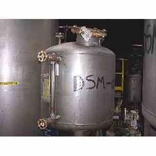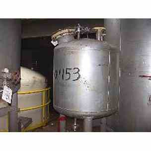 100 gallon Gaston County dye machine stainless steel tank. SN 7/1390/511 32" diameter x 27" high straight side. Fittings top: (1) 2", (2) 1", and (1) 8" hand hole. Fittings bottom (2) 1" (2) 3/4" side outlets for level indicator. Mounted on (3) legs.