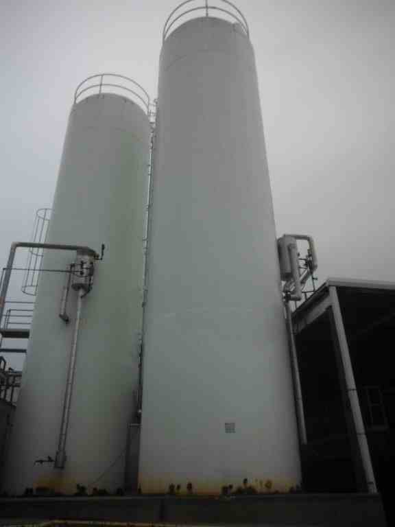 USED WALKER MODEL VSHT 20,000 GALLON S.S. REFRIGERATED VERTICAL SILO TANK, S.S. ALCOVE, CIPABLE, HORIZONTAL MECHANICAL AGITATION, CIP & VENT LINES, SPRAY DEVICE, 3" TRI CLAMP INLET & OUTLET, 80 SQFT COLD WALL, APPROX 121" DIA X APPROX 45' HIGH (QTY. 2 AVAILABLE)