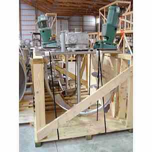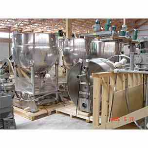 400 Gallon Groen Stainless Steel Kettle, Model # RA400 EG. Dual side sweeping agitation. Motors are 5HP side sweep at 25 RPM. 2nd agitator is 3.5 HP. Bottom and 2/3rd of jacket rated 45 psi @ 300 F. National Board Stamped. 3” bottom center drain, 37” from floor. 58” ID x 4’ deep. Agitator can be removed for cleaning with covers. 3.5 HP agitators have final of 350 RPM. Overall dimensions- 11’6” high, 64” square. Serial # 47077 - 91747-1. (Qty. 2)