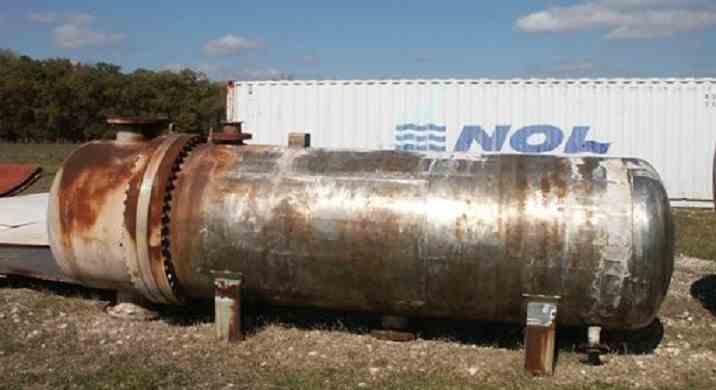 Approx 2000 Sq.Ft. (1150) 3/4" OD 316L Stainless Steel tubes, U tube Heat exchanger. Approx 3'4" dia. x 10'. Carbon Steel Head. 316L-SS Shell rated 185 PSI @ 400 F. 316L-SS Tubes rated 100 PSI @ 205 F. 1 Pass shell, 2 Pass tubes. Type BEU. Built by Atlas Industrial, S/N: 4782, NB # 3917.