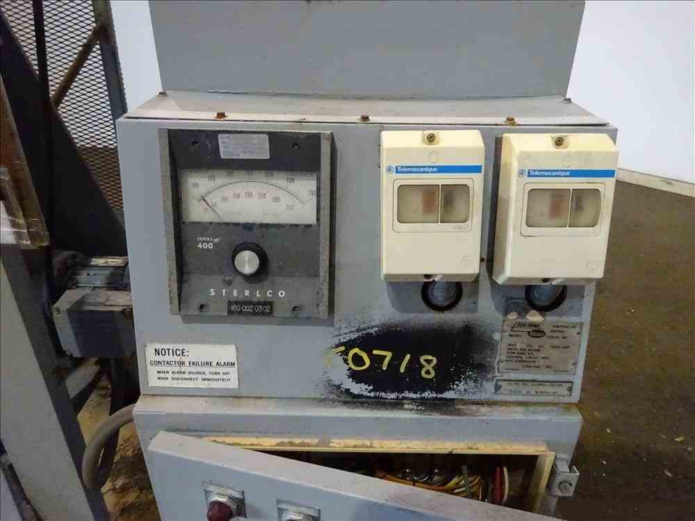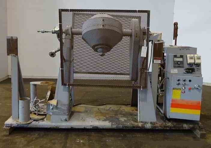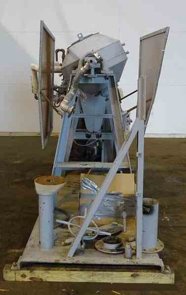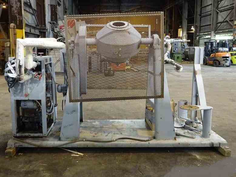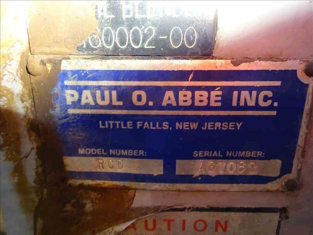 Used Paul O. Abbe Rota-Cone Vacuum Dryer, Model 24-RCVD-1, Stainless Steel. 2.5 Cubic feet working capacity. 24" Diameter body with cones. Includes a vacuum line assembly. Carbon steel jacket rated 14 psi. 8" Diameter top charge port, 6" bottom outlet, no valve. Driven by a 1/2 hp, 3/60/230/460 volt, 1700 rpm gear motor, approximate 5 cone rpm. Includes a Sterlco hot oil heater, Model F6016-DX, 18 kw. Dryer mounted on steel stands on a carbon steel base. Serial# on system A37089, serial# on dryer only A35766.