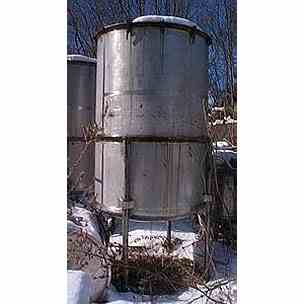 750 gal. Vertical, Agitated, S/S Tank type 304 stainless steel construction, 54" dia x 76" straight side, dished bottom head with center bottom outlet, flat hinged cover, top mounted Lightnin Model LDG-100, 1 Hp 3/60/220-440 1735 rpm, 431 RPM Output Speed, explosion proof agitator, on legs.