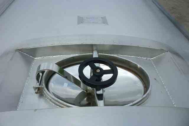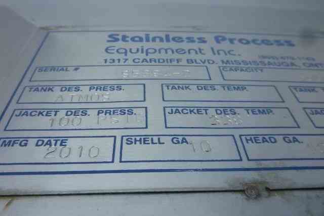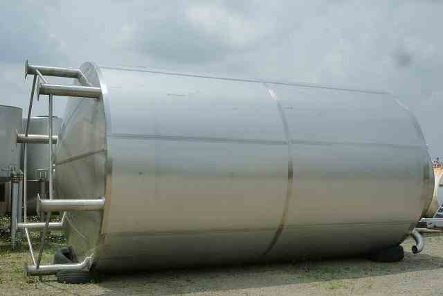 USED 15,000 GAL SANITARY STAINLESS STEEEL STORAGE TANK. CONED TOP AND BOTTOM.INSULATED AND STAINLESS STEEL CLAD. 11'6" DIAMETER x 20'(T/T) 25' OVERALL HEIGHT W 24" CONE TOP. 12' OD W/ 3" INSULATION) 14" CONE BOTTOM. SIDE DIMPLE JACKET RATED 100 PSI @ 338 DEG.F. (CRN#0118077.5). SHELL & HEAD: 10 ga. 16" FRONT OVAL MANWAY, 3" TRI CLAMP OUTLET WITH VALVE. 6 STAINLESS STEEL PIPE LEGS WITH FOOT PADS, 4 LIFTING LUGS. YEAR OF MANUFACTURE: 2010. LAST USE: LEMON JUICE.