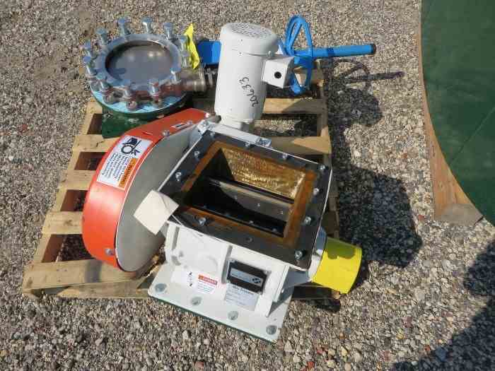Unused 433 Cu. Ft. Clayton H. Landis Steel Incoming Product Silo. Lug mounted on Steel frame. Orbinox 12" Two-gate valve. Mac Process Rotary Feeder model 1100202. Tank Dims: 66"H x 96" Dia with 74" cone. 3240 gallons. Tank and frame dims: 17'6"H x 9'3"W. Serial #540-020-1. Built 2001.