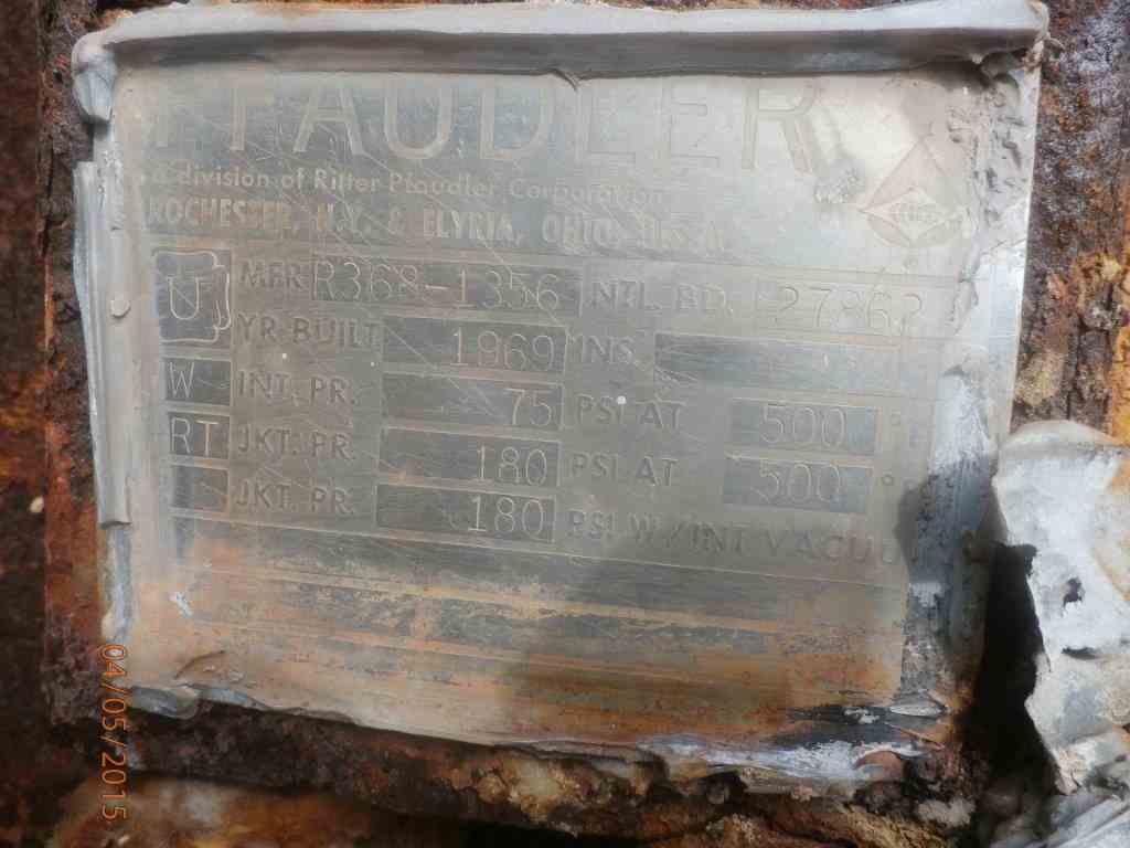 Used 6000 Gallon Pfaudler Reactor. 316SS CLAD WITH SA264 20% Type 316 SS Lined Reactor BODY. Shell rated 75 PSI@500F. Inconel Dimple Jacket rated 180/FV PSI@500F. 114" Dia x 10'3"H. 10" TOP Center Nozzle. Mounted on Legs. Serial #R368-1356. National Board # 27862. Built 1969. U-1 on file.