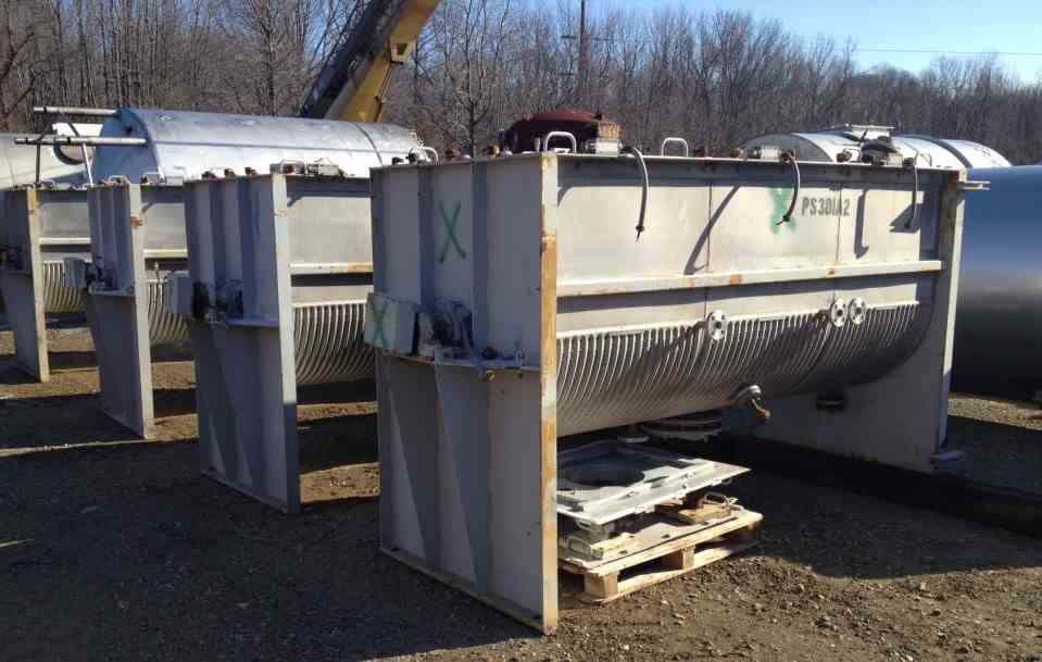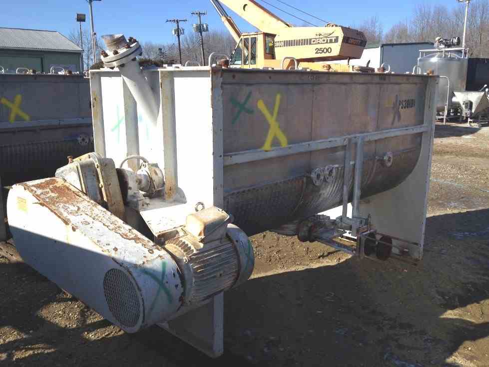 Used Approx. 100 CU.FT. used Jacketed Ribbon Blenders built by Munson. 304 Stainless Steel Construction. Mixing chamber is 42" w x 108" lgth x 47" deep. Center bottom outlet. Jacket rated 127 PSI @ 353 Deg.F. Driven by 15 HP 460/3/60 motor with speed reducer. Approx. Shipping dimensions 63" w x 76" ht. x 152" lgth. S/N: FM-2094-0 (Qty - 3 available)
