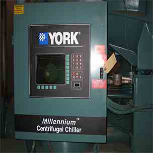 375 Ton York Millenium Liquid Chilling System, Centrifugal Type, model #YTG3A3E1-CNJ, R123 refrigerant. Design condition 900 GPM of water from 50 deg F to 40 deg F, Condenser water 1125 GPM from 85 deg F to 95.6 deg F, Turbo-Modulator KW input - 272.