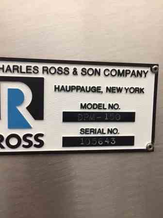Used 150 gallon Ross Double Planetary Mixer. Model DPM-150. Built in 2008. Change can style with air/oil hydraulic lift. Stainless steel contact parts. Mix can on casters for portability. With HV High Viscosity Blades. Siemens panel with timer. Electrically set up for 3/60/460 volt power. Last used for pharmaceutical service.