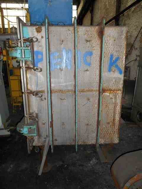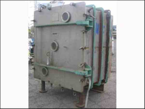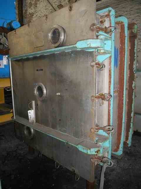Used Alloy Fab Vacuum Shelf Dryer, 133.3 sq ft shelf area, stainless steel construction, with (10) 48" x 40" shelves, 4" shelf spacing, rated 15 PSI and full vacuum @ 300 degrees F, jacketed for 50 PSI @ 300 degrees F, with (3) 5.5" sight glasses, Serial No. 553-2.