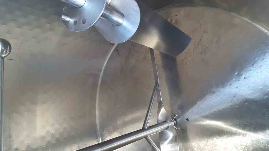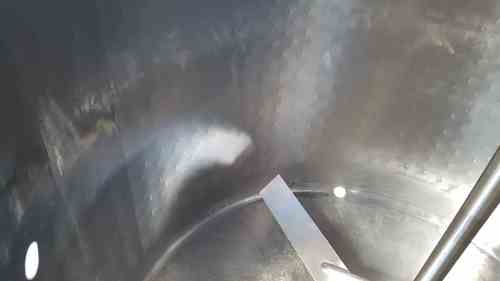 USED DCI 2,000 GAL DOME TOP, SLOPE BOTTOM, PRESSURE WALL PROCESSING VAT. WIDE BOTTOM SWEEP AGITATOR W/ BAFFLE, 3” OUTLET. S.S. LADDER. BOTTOM & SIDEWALL HEAT EXCHANGE SURFACE. 100” DIA X APPROX 120” H. SERIAL #85D32691-C.
