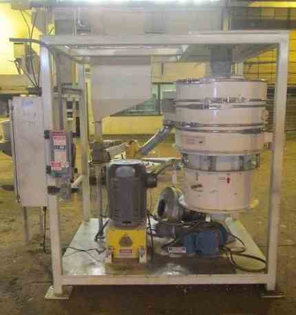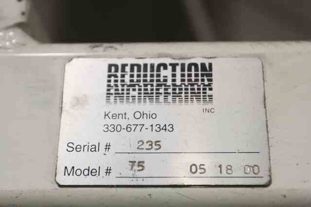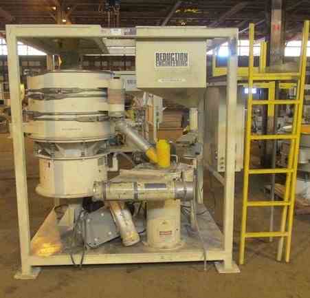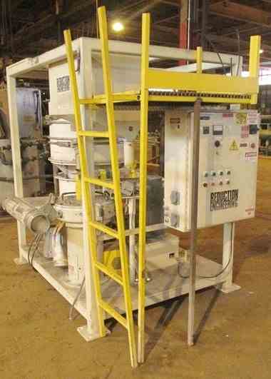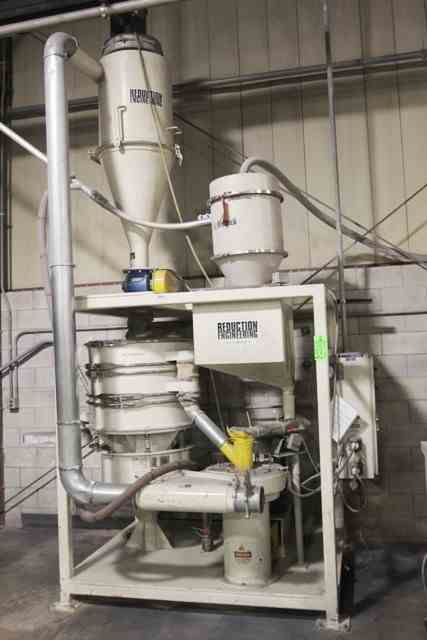 USED REDUCTION ENGINEERING PULVERIZER MILL, MODEL 75. EQUIPPED WITH 30 HP MOTOR. INCLUDES MATERIAL RECEIVER, VIBRATORY FEED, CYCLONE, AND 30" DIAMETER 2-DECK MIDWESTERN SCREENER FOR CLASSIFICATION OF PRODUCT. SERIAL #235.