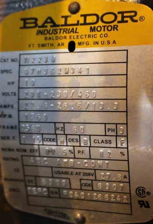 Used Fitzpatrick Chilsonator/Roll Compactor, Model 7LX10D. Approximate 10" diameter x 7" face hastelloy C276 Sine grooved style clad rolls, approximate 450 to 900 kg/hr. Driven by a 10hp, 3/60/208-230/460 volt, 1760 rpm motor with Falk gearbox, ratio 104.98 to 1, output 8.2 rpm. (1) Hastelloy C276 upper feed hopper with conditioner bar, into (1) hastelloy approximate 6" diameter horizontal screw feeder, each driven by a 1.5hp gearmotor, ratio 30 to 1. (1) Approximate 6" diameter hastelloy vertical screw feeder, driven by a 10hp, 3/60/460 volt, 1760 rpm motor. Mounted on a carbon steel frame. Missing guards and vertical feed belt.