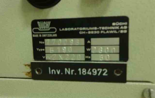 One used Buchi B-190 Spray Dryer. S/N 770096. Made in 2007. Rated up to 1500 ml/hr evaporation rate.